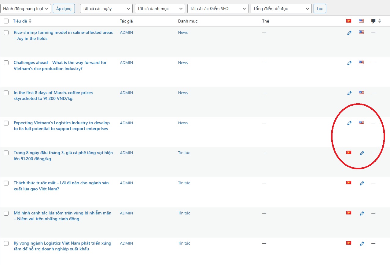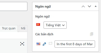 Trang bài viết mới này đã được Polylang tự động thiết lập là “bản dịch Tiếng Anh” và liên kết với bài Tiếng Việt bạn vừa viết. Bây giờ bạn cần: